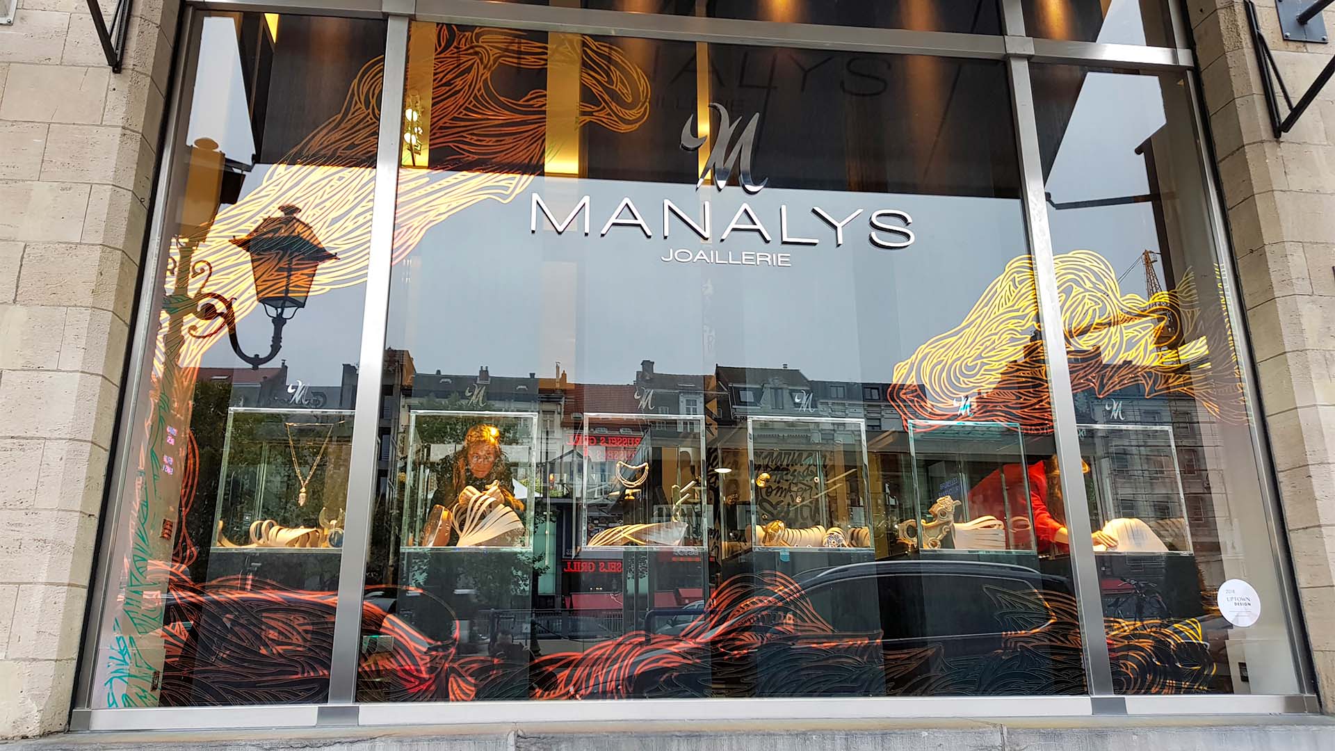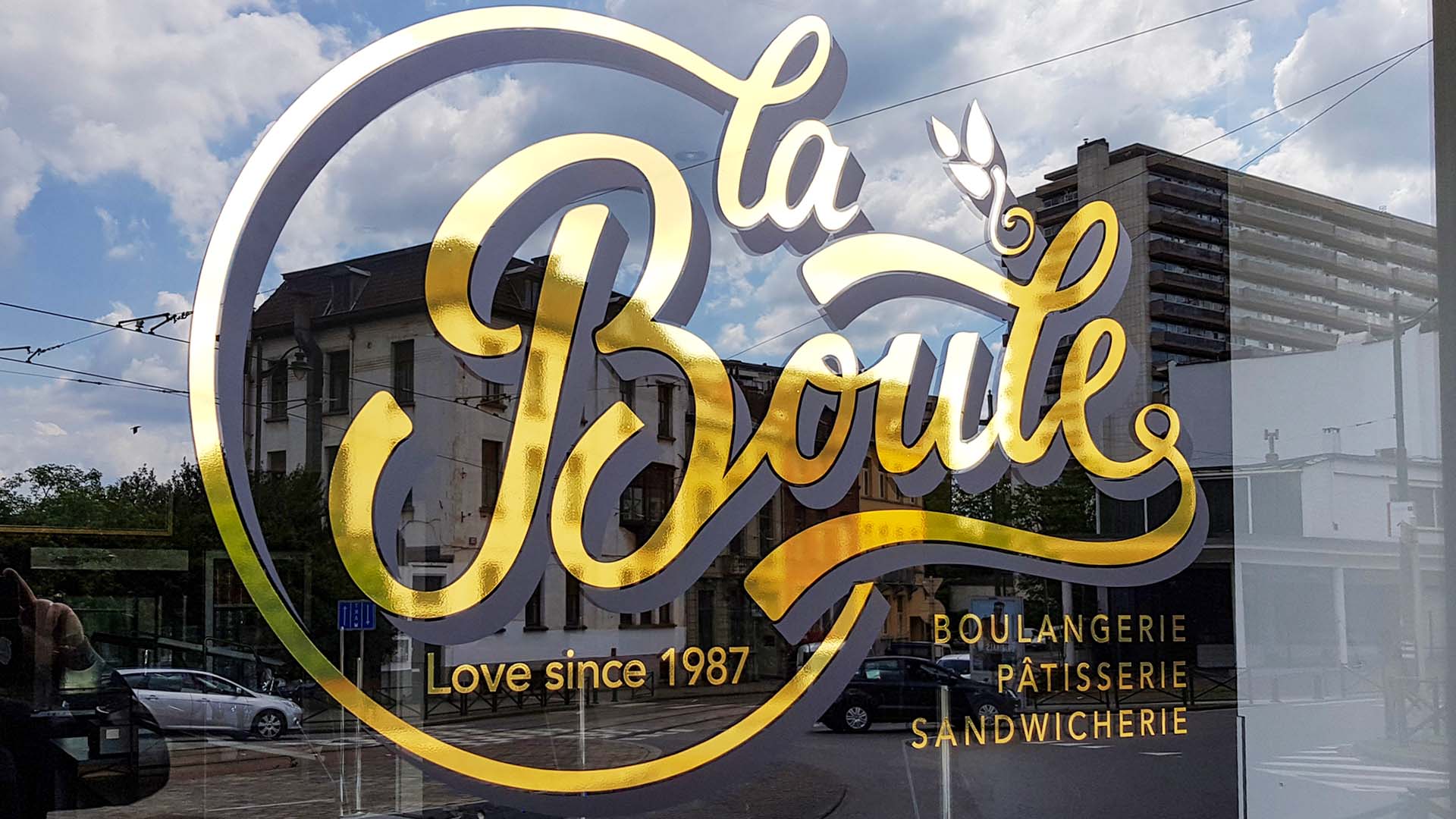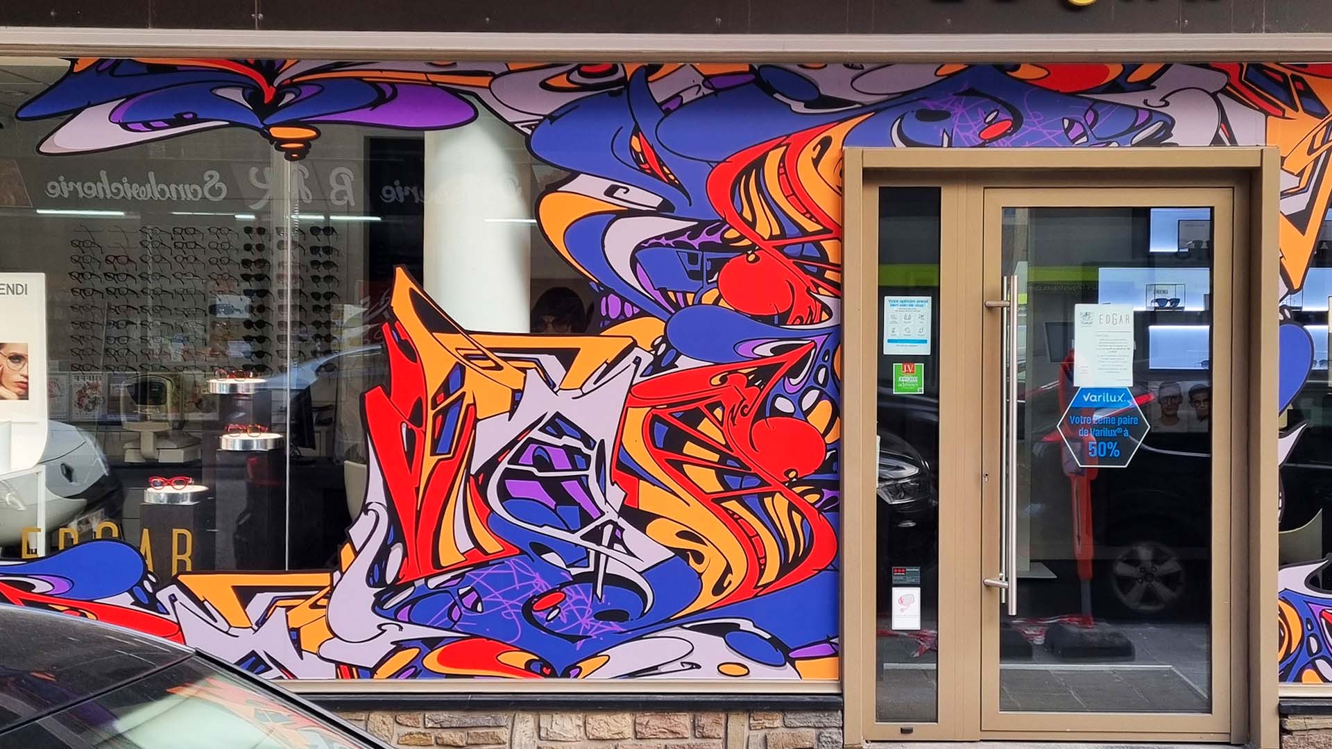 Nous concevons des lettrages et vitrophanies sur mesure pour donner vie à vos vitrines, murs et surfaces.