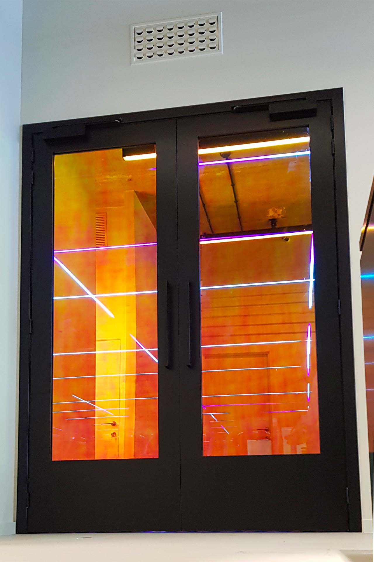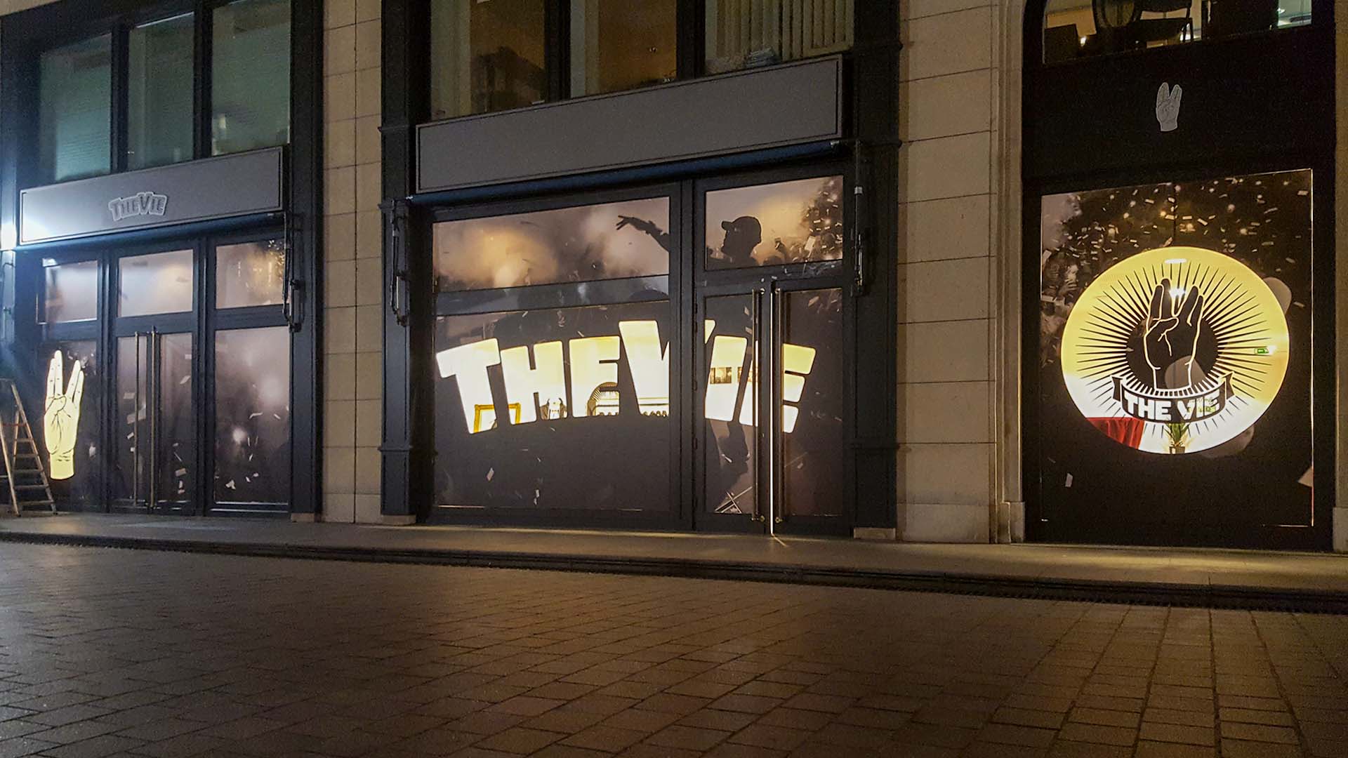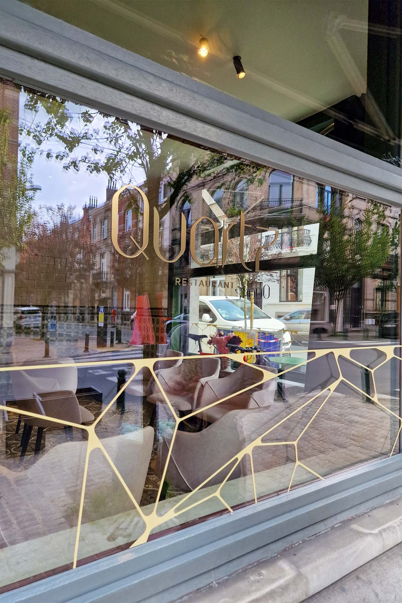 Nous concevons des lettrages et vitrophanies sur mesure pour donner vie à vos vitrines, murs et surfaces.
