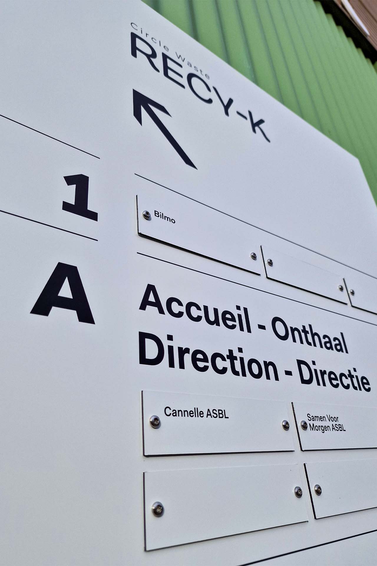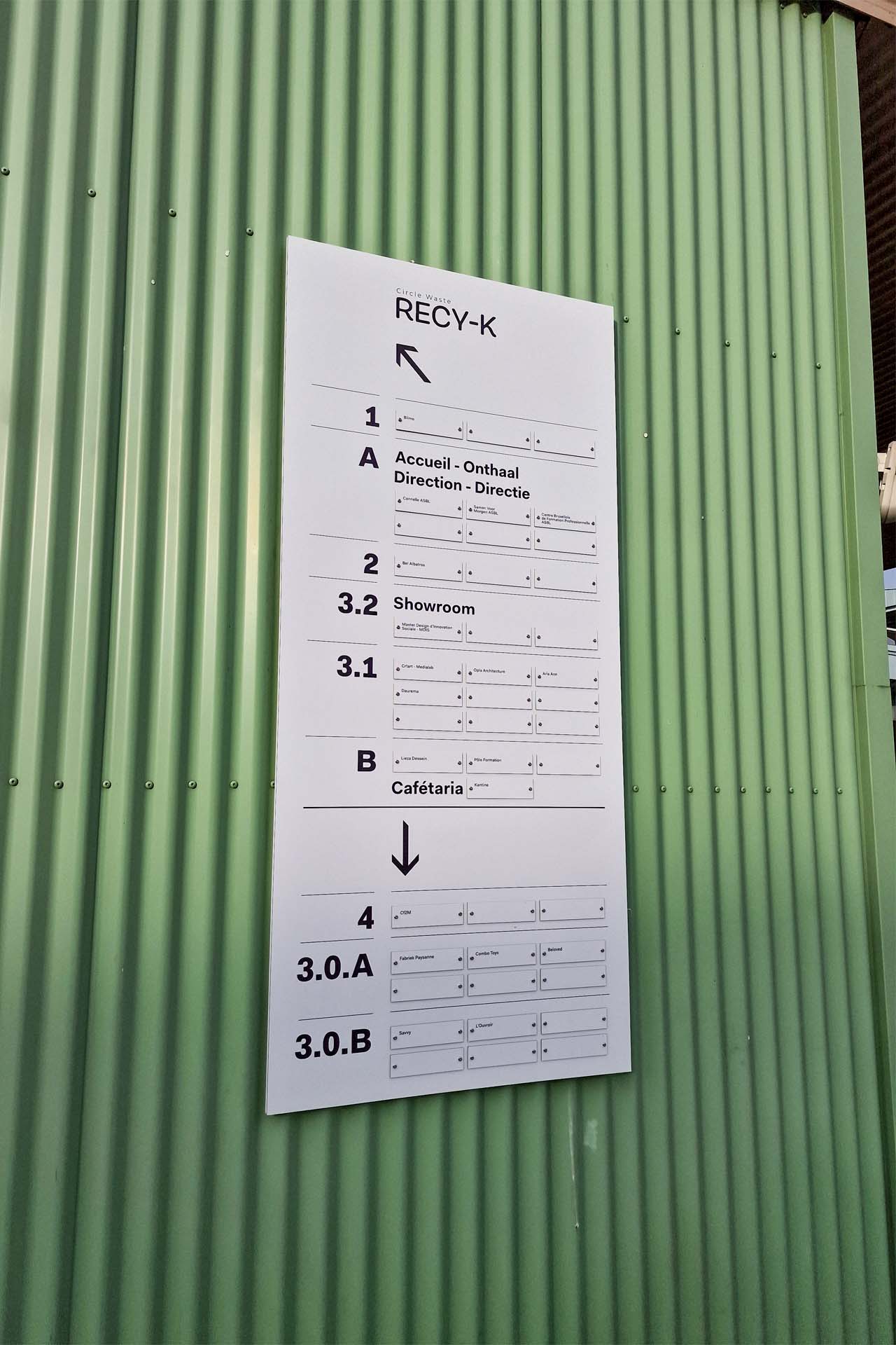 Plaques directionnelles, panneaux d’accueil, enseignes, habillages muraux ou marquages au sol : chaque support est conçu pour allier lisibilité, esthétique et fonctionnalité.