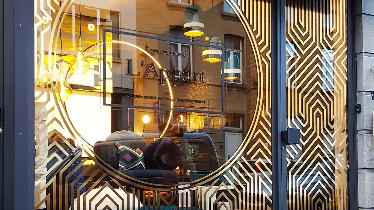 — Application sur vitrines, murs, intérieurs et extérieurs